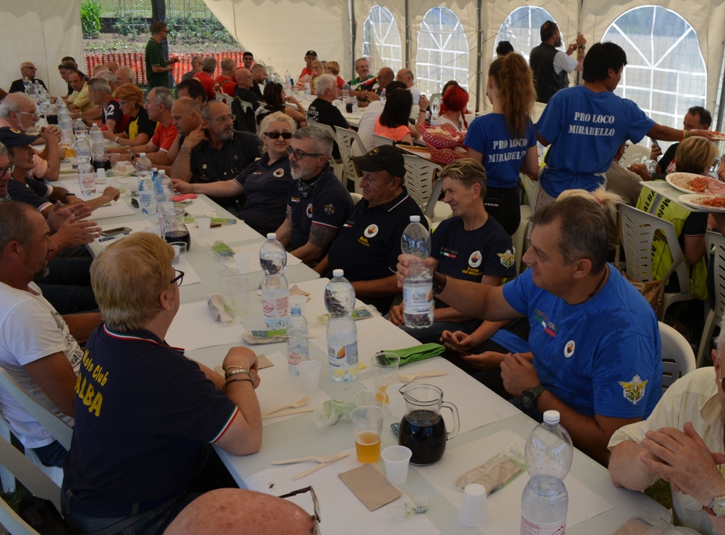Sole caldo e tante moto a Mirabello Monferrato al rally tour organizzato da gli amici del moto club Mirabello nuova formula di moto turismo che ci permette di percorrere strade interessanti e di visitare nuovi luoghi e che grazie ai 25 soci del Moto club Alba iscritti alla manifestazione ci ha permesso di aggiudicarci il primato nella classifica generale.